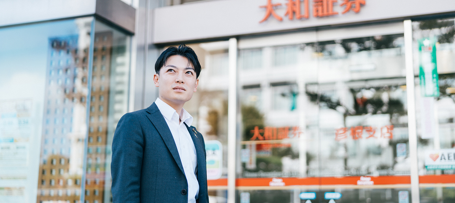 入社前は主に資産をお持ちの高齢のお客様を相手にすると思っていました。しかし実際に私が担当しているのは、比較的若い経営者のお客様がメインです。そうした方々に期待を超える付加価値をつくりあげることは、ハードルも高く難しいですが、達成できたときの喜び、達成感は格別です。一人の力には限界がありますが、大和証券はそれを総合力で乗り越えます。株式や債券は勿論、事業承継や不動産、相続など、大和証券の専門部署には様々な分野に秀でたメンバーが揃っています。必要に応じて各分野の専門家と連携することで、オーダーメイドのソリューションを提供することができます。そうした総合力を背景に、期待以上の提案を行なうことこそ、この仕事の醍醐味です。