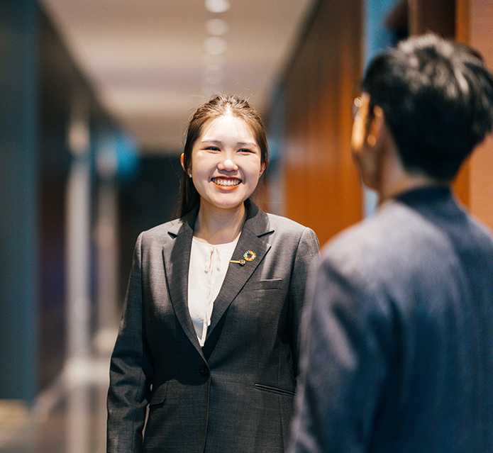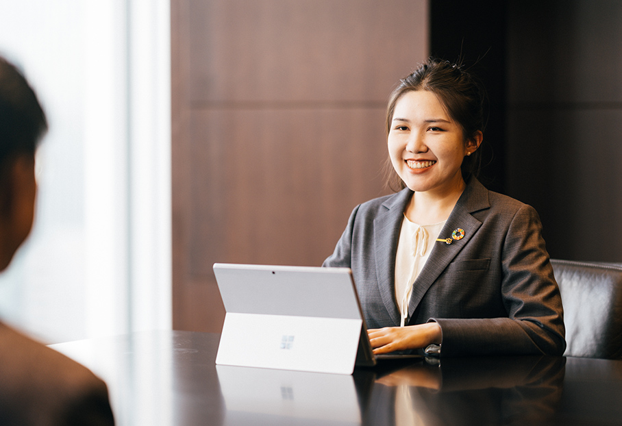 デリバティブ・トレーディング部、大和証券の中でも特に多国籍の人材が多く集まっている部署です。みんなの背景、出身、趣味などが違うからこそ、フラットにコミュニケーションできる環境が自然にできて、楽しく仕事ができるのだと思います。多くの社員がバイリンガルであるため、日本語以外の言葉が飛び交っている面白い環境です。とはいえ、普段は敬語を含めて丁寧な日本語を使うことを意識しています。大事なのは意志がきちんと伝わることですが、文化に対しての必要最低限のリスペクトと考えています。